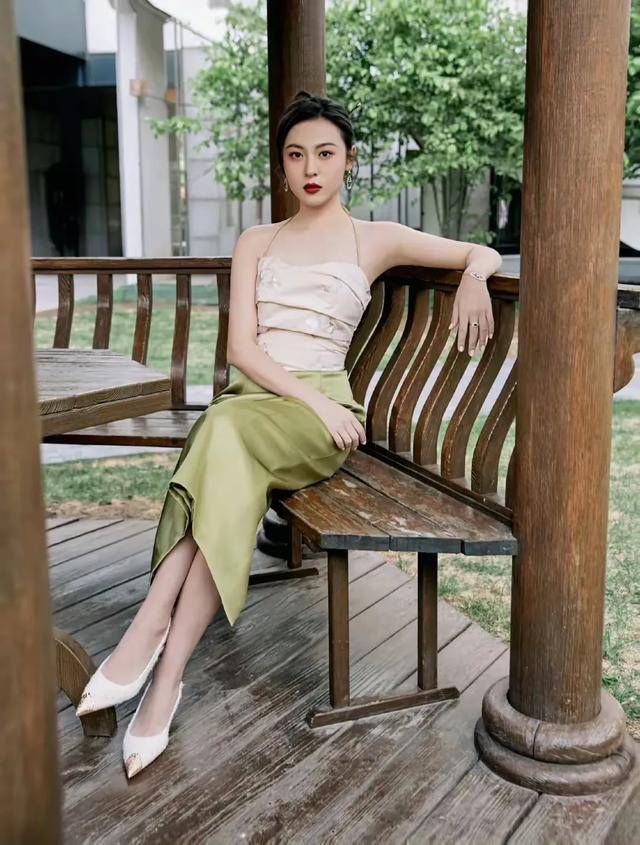 下身是绿色的裙装,虽然没有不是修身,但也无法掩盖她欣长的身形。再加上一双高跟鞋,使得她更加的魅力无限。女人的魅力似乎只有好的身材与高跟鞋才能够真正显示出来。