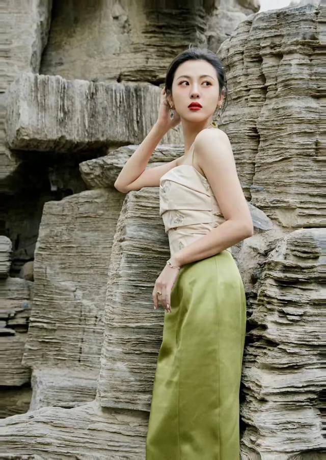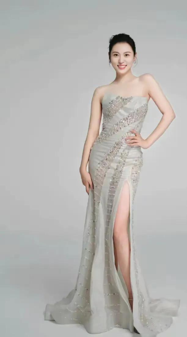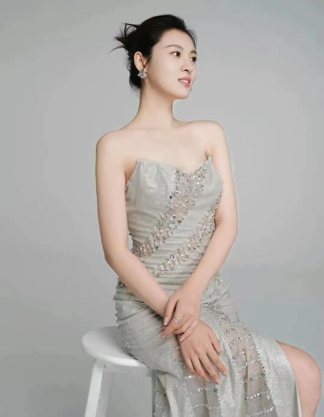 这有几张周放的写真,有一组是身着浅灰色的修身束胸连衣裙,完美的展现出周放一米七身高的优势。那种妖娆感真是如弱柳扶腰,盈盈一握就是说的她的腰身吧。优雅的身姿与美丽的微笑,让她更加明艳动人。